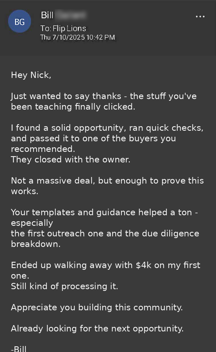 Disclosure: Flip Lions is an education + community program. Members find and secure online business opportunities and earn transfer fees. We don’t represent buyers or sellers. Results vary.